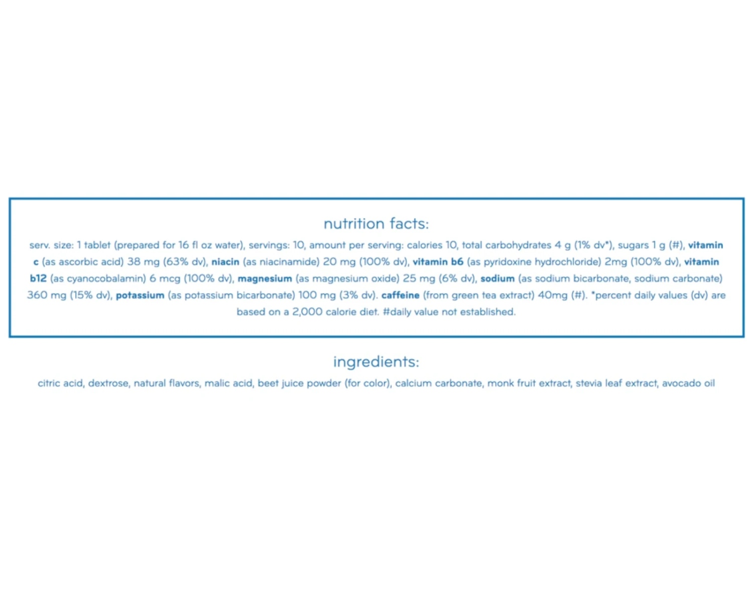 | Other Product Specs | Contains 80 servings – 10 tablets per tube |