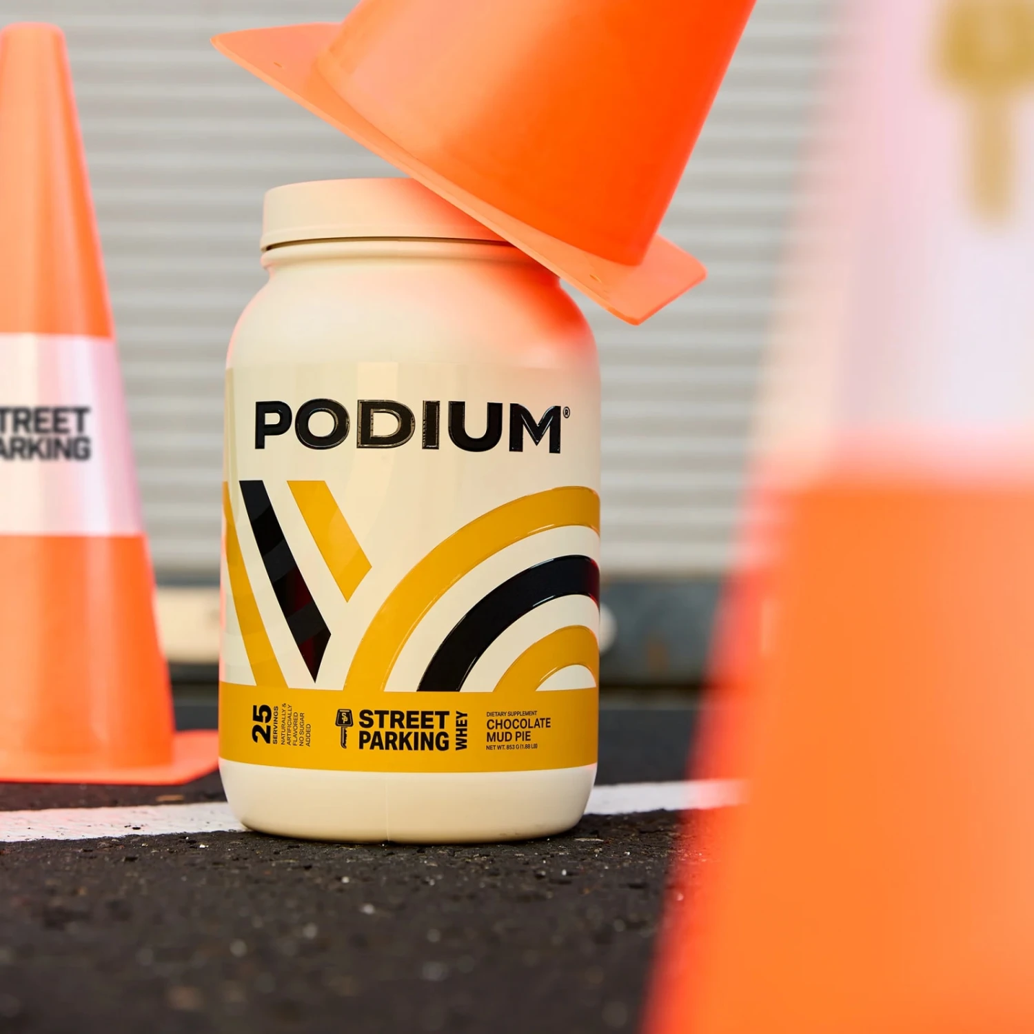 Podium has joined forces with Street Parking to create a new Limited Edition dietary supplement, Chocolate Mud Pie Whey.