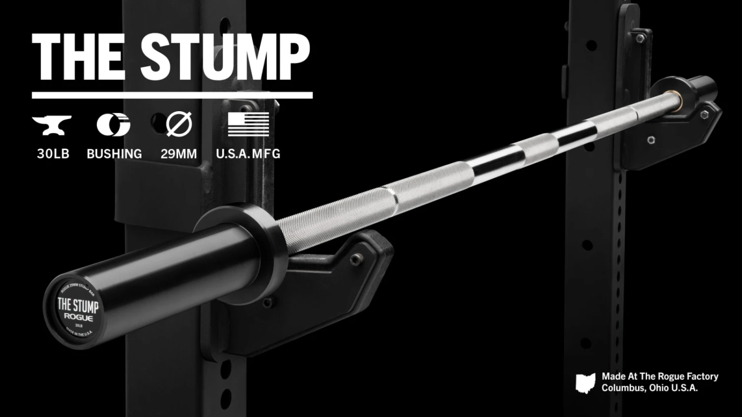 The Rogue Stump Bar is a rackable, short-sleeve version of our stainless steel Ohio Power Bar, built with the same 29mm diameter, little-to-no flex shaft (200,000 PSI), bronze bushings, and aggressive knurl pattern (in single powerlifting knurl marks + center knurl). Though the shorter sleeve length (7.3125” vs 16.25”) reduces its potential weight loads, the 30 LB Stump Bar is ideal for home gym owners who train in tight quarters and/or don’t need full-length sleeves for their powerlifting movements. With thinner plates such as our USA Olympic Plates or Calibrated Steel Plates the Stump can still be loaded to over 500LBs.