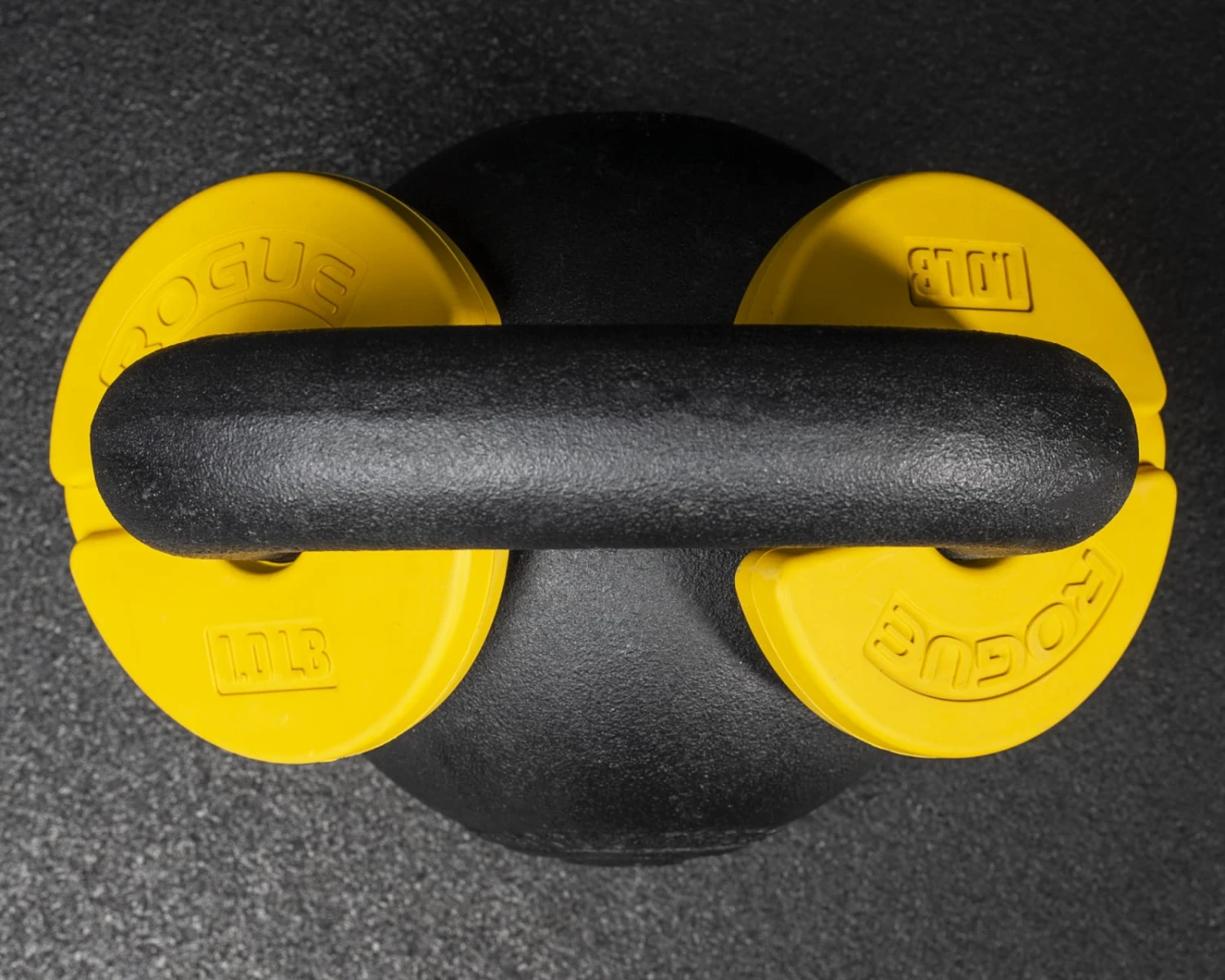 Rogue Add-On Change Plates feature a unique twist-on design that allows them to be opened up at one end and securely attached to the grip/handle of a dumbbell, kettlebell, or fixed weight barbell (they will NOT fit on the sleeve of a standard barbell). This simple innovation makes it far easier for athletes, regardless of skill level, to push for constant gains through measured, micro progressions—without having to sacrifice technique.