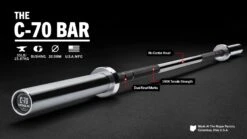 The C-70 Bar features the same 28.5MM diameter, American 190,000 PSI steel, bronze bushings, and dual knurl marks as the standard-length Ohio Bar, and is backed by our standard lifetime warranty against bending*. This latest model includes a Black Zinc shaft and an updated Bright Zinc sleeve finish.
