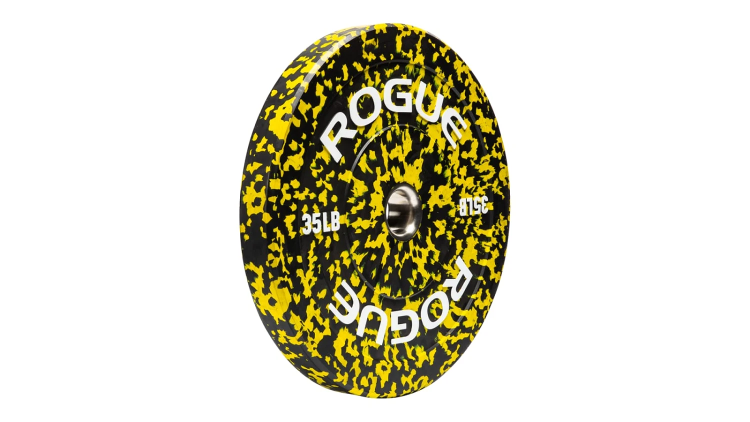 Rogue’s 90 durometer LB Fleck Plates are equipped with a 304 stainless steel hub insert (50.4mm diameter) and held to a strict +/- 1% weight tolerance standard. Built for long-term durability and minimal bounce on the drop, these quality bumpers also include a new black + color fleck finish—- a nice change-up from traditional full color plates that still offers easy plate weight identification from a distance.