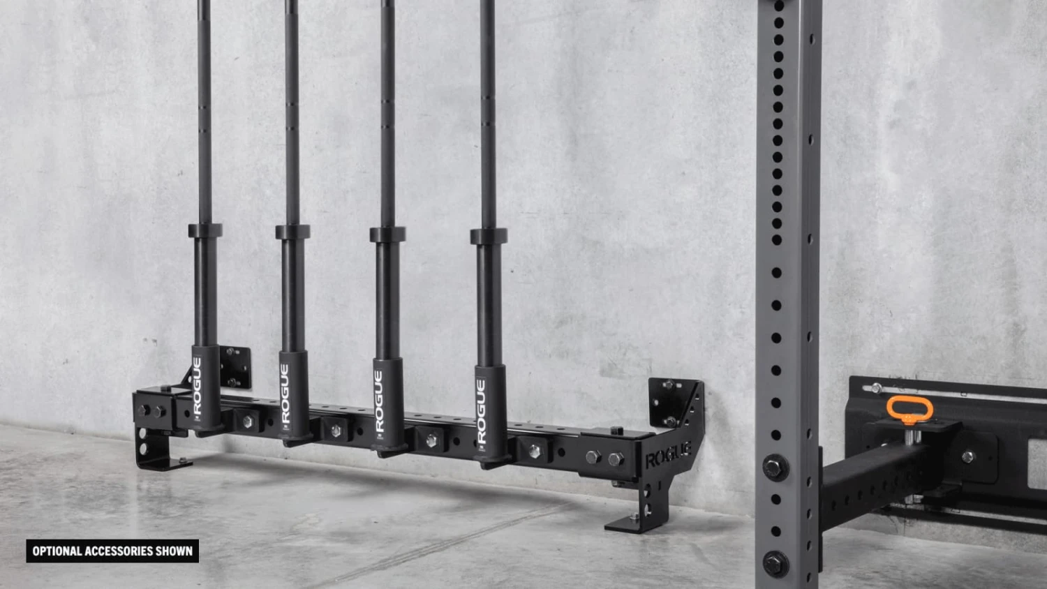 The Rogue Heavy Rail is a 3×3” 11-gauge steel channel designed to mount along the base of a gym wall for a wide range of custom storage and functional training purposes.