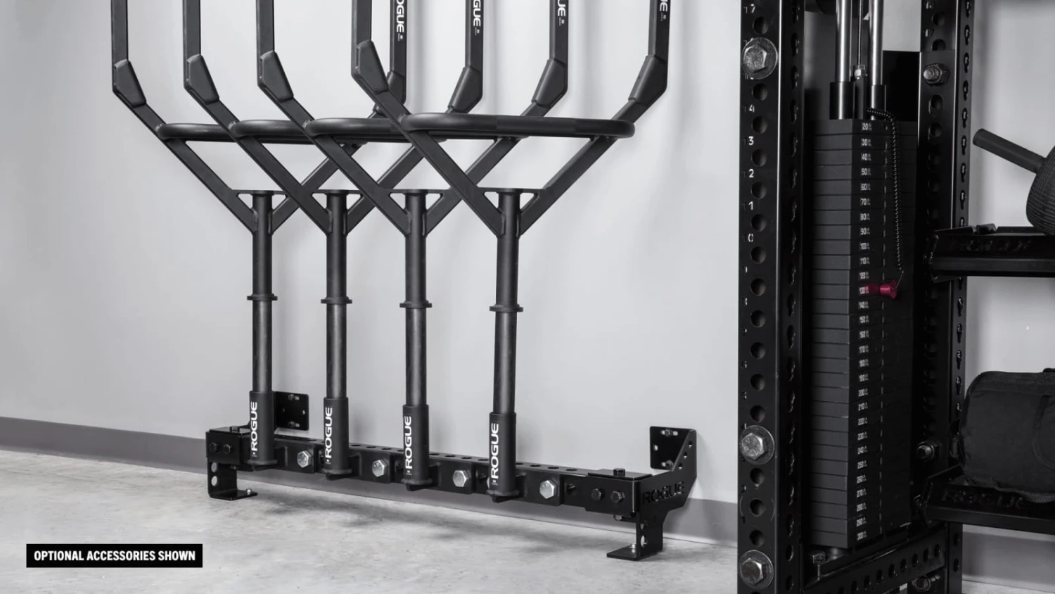 The Rogue Heavy Rail is a 3×3” 11-gauge steel tube designed to mount along the base of a gym wall for a wide range of custom storage and functional training purposes.