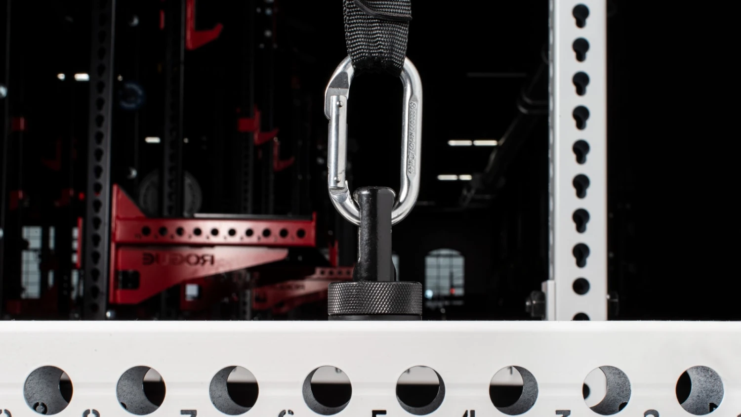 Now available with your choice of either band-loaded or plate-loaded resistance, the new Rogue Monster Slinger™ is a rack-mounted cable-pulley system designed to deliver the same training benefits of a traditional Lat Pulldown Machine with better space and cost efficiency. This attachment is compatible exclusively with our Monster Series Power Racks, and comes with adjustable components for set-up on a 90”, 100”, or 108” unit. Every customer also has the option of adding a compatible Pioneer Leather Tricep Strap, and/or a Rogue Stainless Steel Lat Bar Attachment to their order at an extra cost.