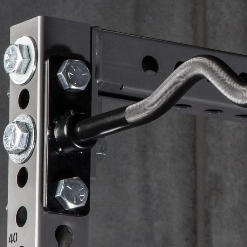 The Socket Pull-Up Curl Bar features the same 28.5MM cambered steel, extended knurling, and Black E-Coat finish as the Rogue Curl Bar. To adapt the design into a pull-up format, we essentially cut off the sleeves and added threaded holes to fix the bar to the provided mounting sockets, enabling easy installation on an existing rig or rack. This particular version is specifically built to fit a 43″ space in a 3×3″ Monster Series unit.