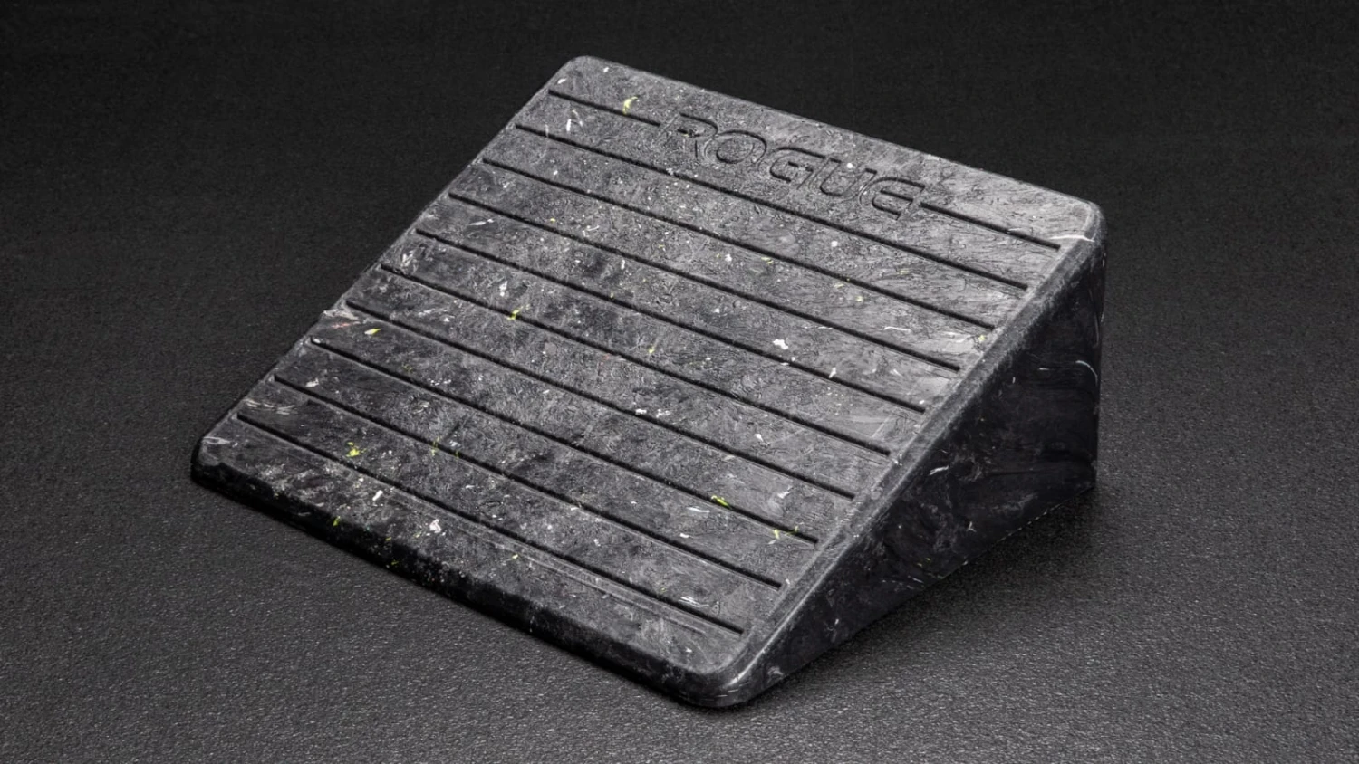 The Rogue Resin Slant Board is manufactured in Michigan using compression-molded, 100% post-consumer recycled plasticβthe same material used in our Resin Plyo Boxes and Resin Squat Wedges. Each board measures 13β wide x 10.5β deep, with a single standard incline of 25-degrees, rising to a height of 5.125β at the back (this is a significantly steeper incline than our 10-degree, 1β tall Resin Squat Wedge).