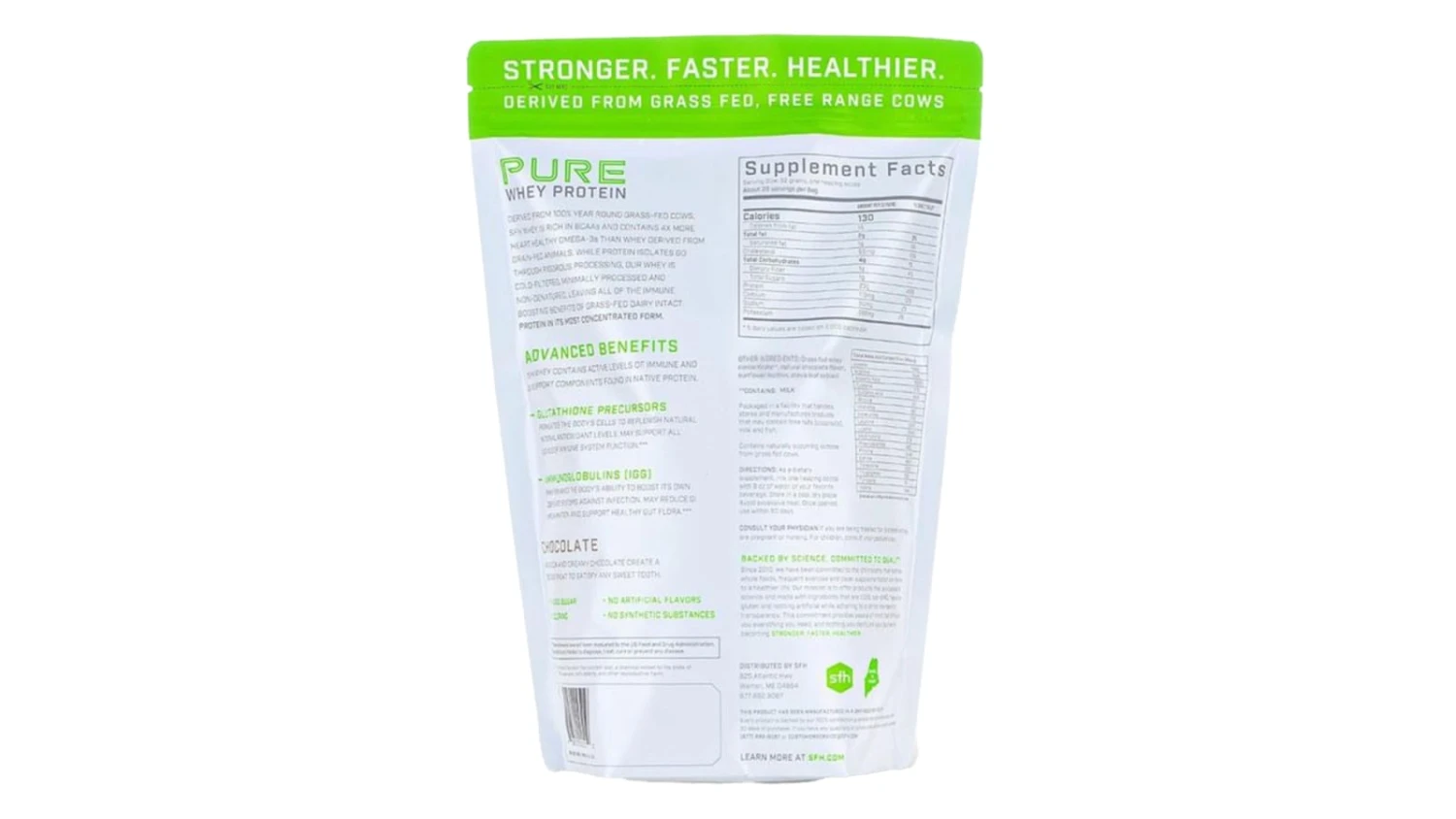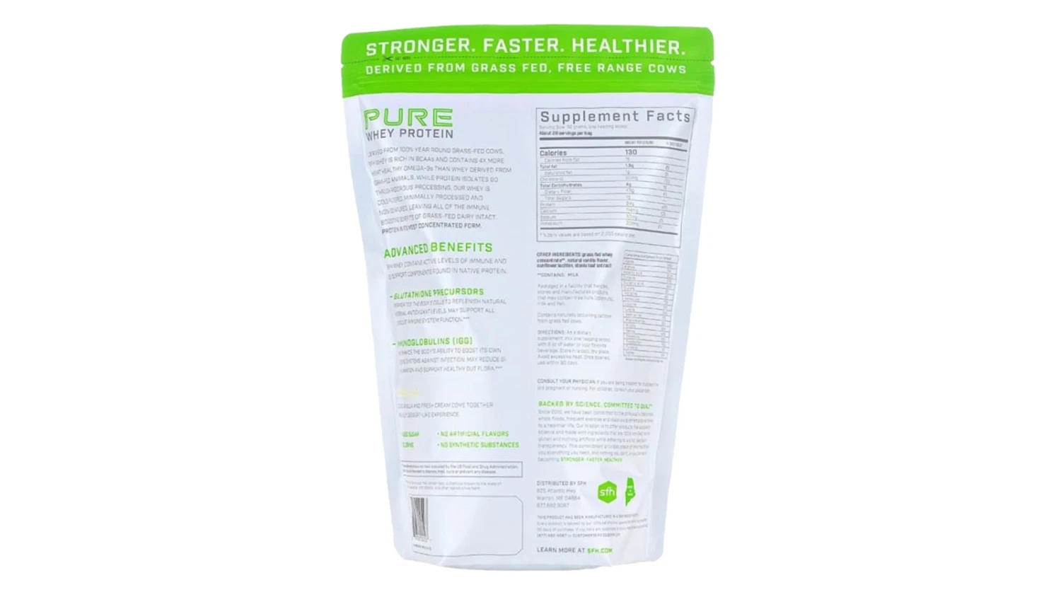 This whey protein is derived from grass fed, free range cows that are never treated with antibiotics or bovine growth hormones. It is a rich source of the essential amino acids needed on a daily basis by the body. It hydrates well in water and is absorbed very well by your body. All whey proteins differ in lactose content, fats and calcium and Pure Whey has low lactose content (averaging about 1.8%); is low in cholesterol; and high in free calcium.