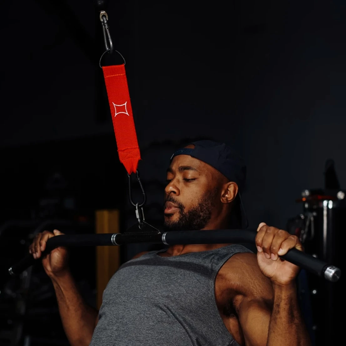 Sling Shot’s Shake Strap Adapter allows you to recreate the feeling and effect of Sling Shot training with most types of cable attachments. Made from durable 2” wide double-ply stretch material, the adapter is designed to attach to a cable machine via the D-ring at the top; an included carabiner at the other end enables quick, secure connection to your existing attachments. The overall length of the entire strap (carabiner included) is 10.5”.