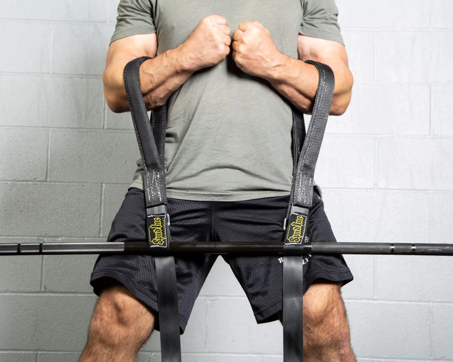 Spud Incβs Zercher Straps have a wide range of applications, including use with a barbell from the floor, off a rack, or even connected to a belt squat machine. The straps are designed with a thick tapered padding that fits snuggly into the arms without shredding up the forearms or biceps as you train.
