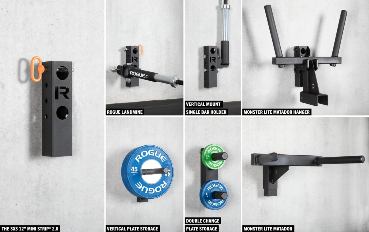 Available in a 12” and 8” format, the Mini versions of the Rogue 3×3 Strip® 2.0 are designed to enable space-efficient, wall-mounted storage of various accessories from the Monster Lite line,
